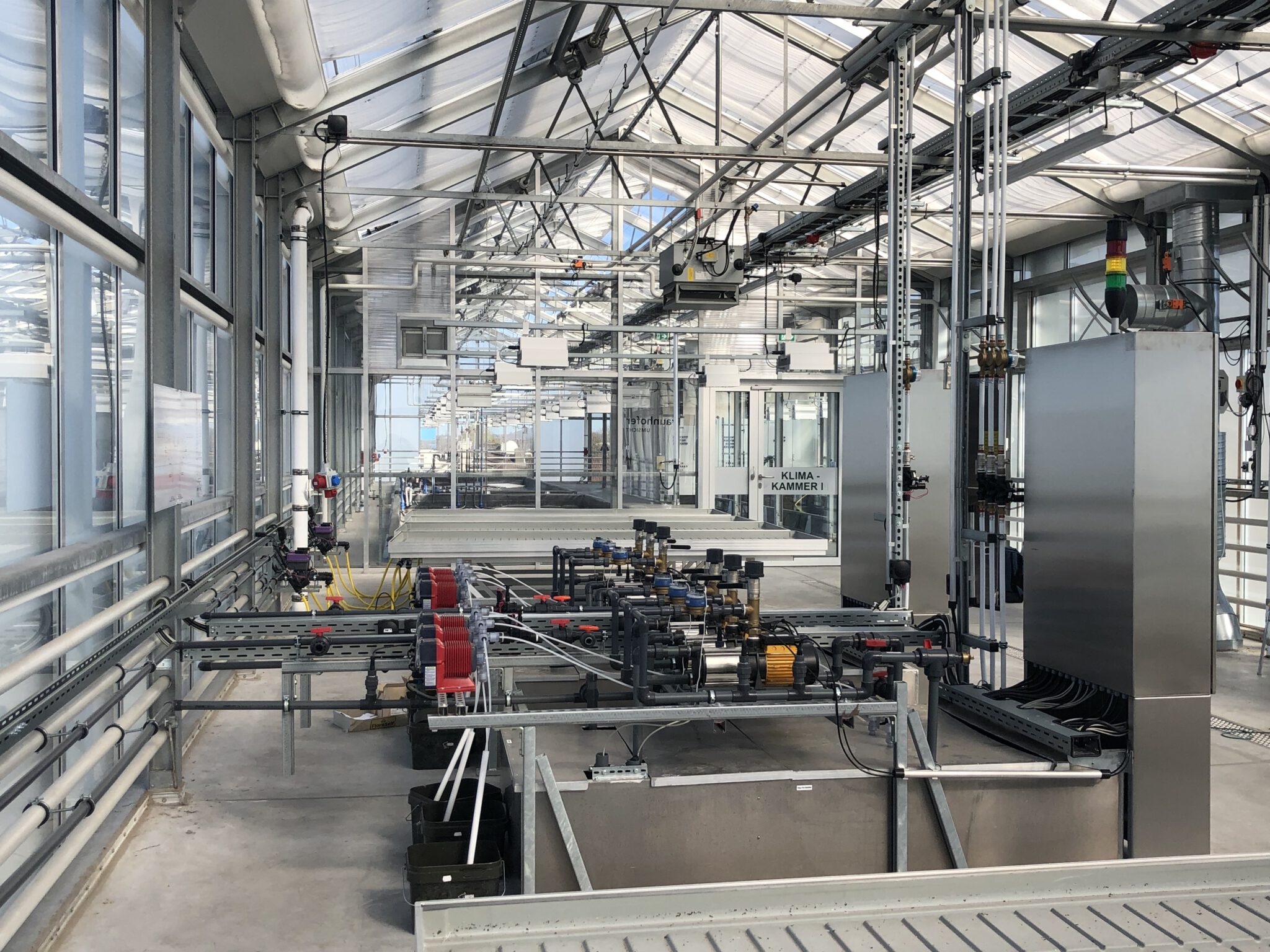 Gäste erhalten hier einen praktischen Einblick in die eingesetzte Technik. Das Forschungsgewächshaus thematisiert Nährstoffrückgewinnung, Belichtung, digitale Steuerung und Materialentwicklung. Es demonstriert, welche Herausforderungen es gibt Licht, Nährstoffe, Wasser und Wärme in einem halb-geschützten Raum präzise zu steuern.
