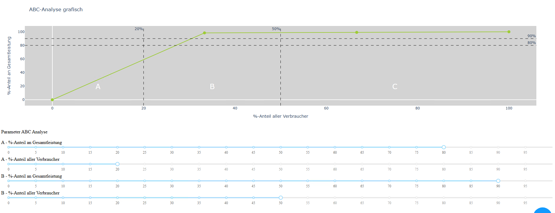 - Anzeige der Schaltpläne und Reports sowie einer ABC-Analyse der Verbraucher nach Leistungsanteilen.