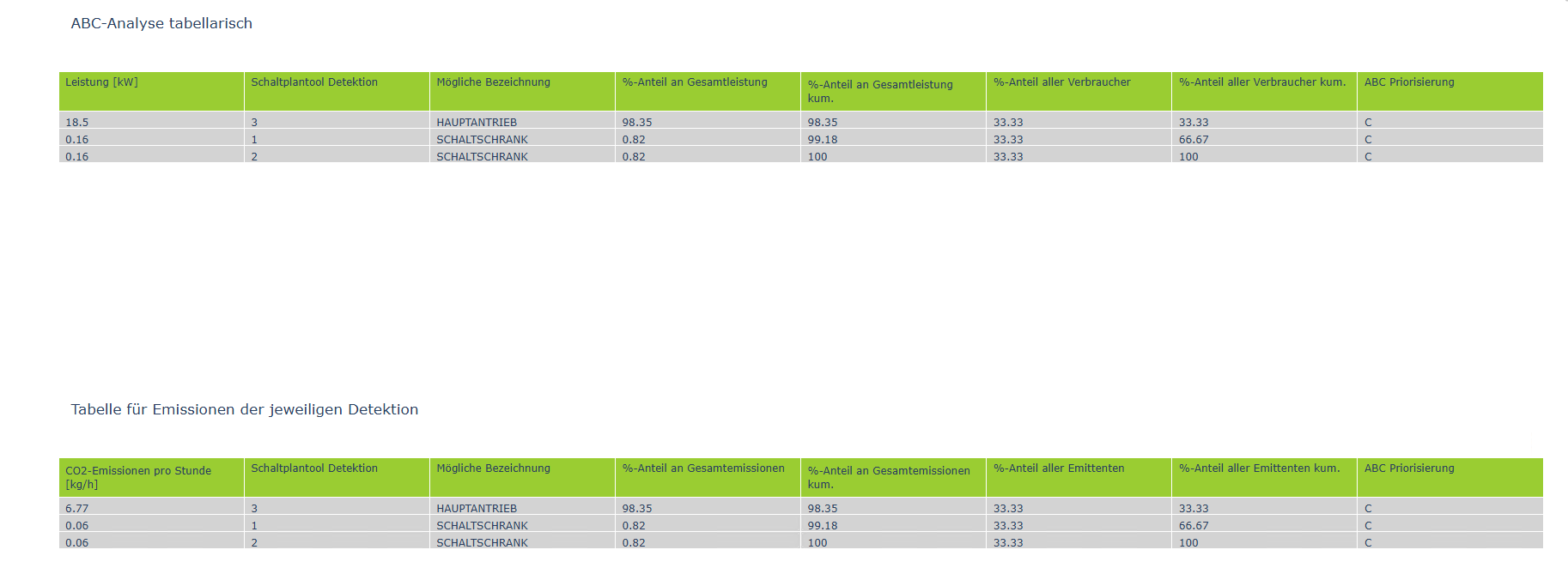 - ABC-Analyse: Priorisierung nach Nennleistung und CO₂-Emissionen.